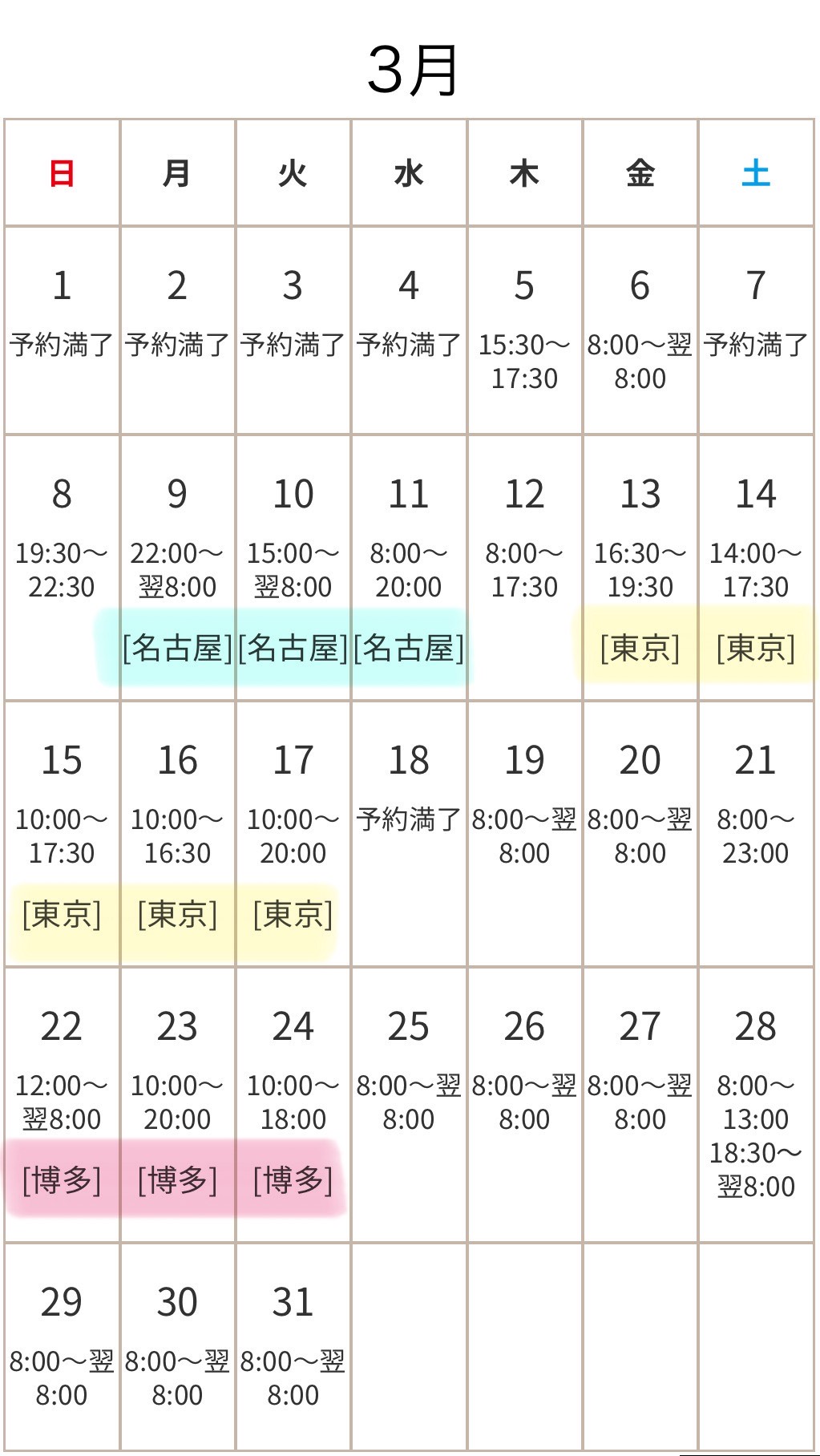 ◯名古屋出張 3/9(月)〜3/11(水)